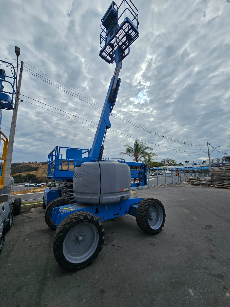 Alcance de até 12 metros - de trabalho com movimentos articulados para acessar áreas de difícil acesso; Elevação rápida e segura, ideal para obras, manutenções, instalações elétricas e muito mais;